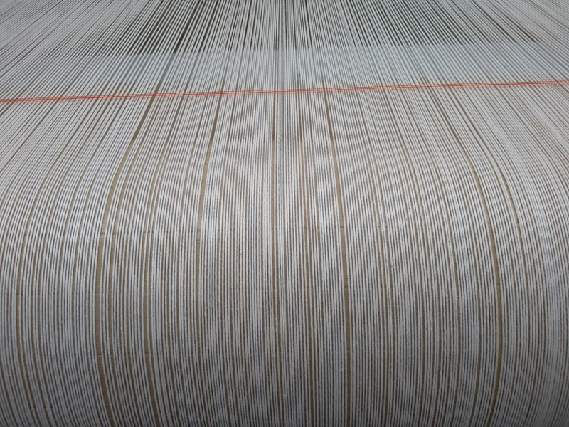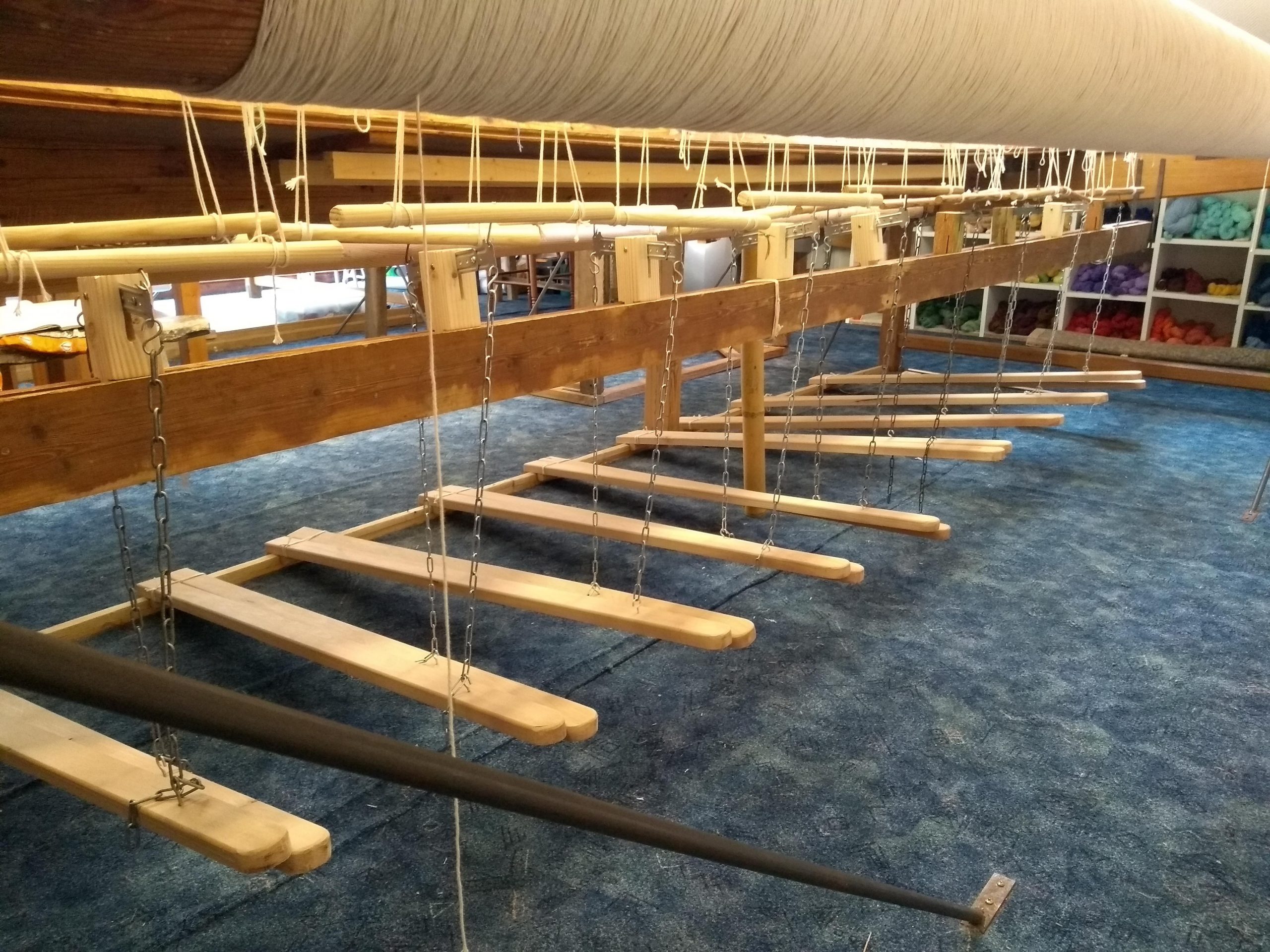Entre-temps, durant la première semaine (9 au 14 mars), nous avons monté la chaîne de coton : 8 crenilles sur 8 lames, soit 8 fois 41 cm, c’est-à-dire 328 cm.