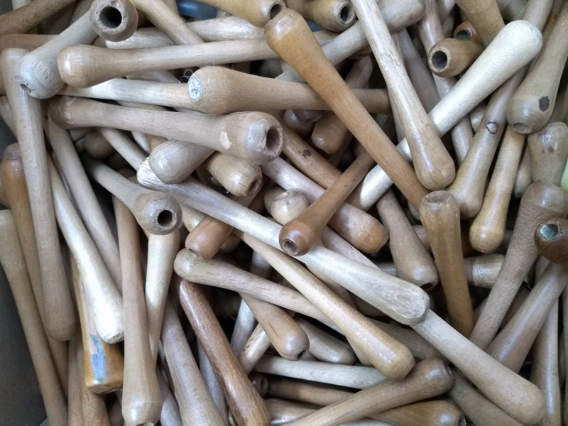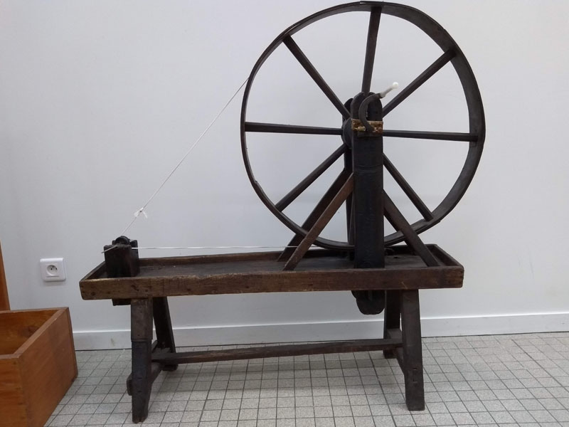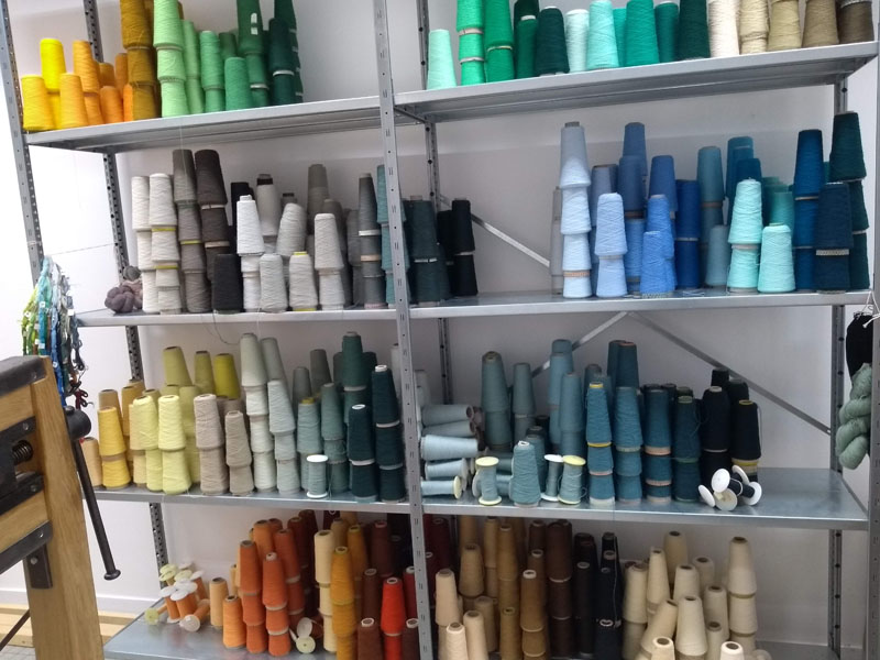 Les laines d’Aubusson 2/20 ont été teintées à l’atelier de Thierry Roger. Elles ont été mises en cônes et rangées dans l’atelier. Dès lors, Le flûtage a pu commencer.