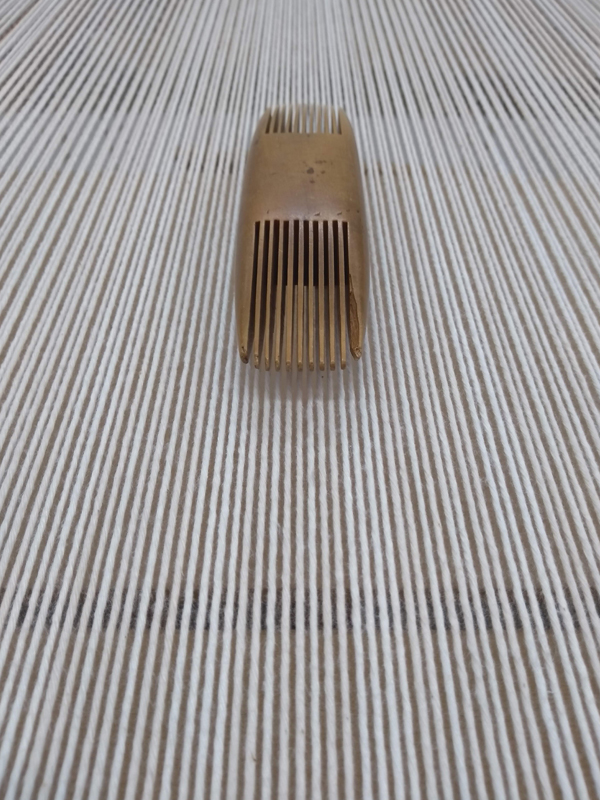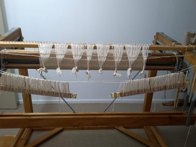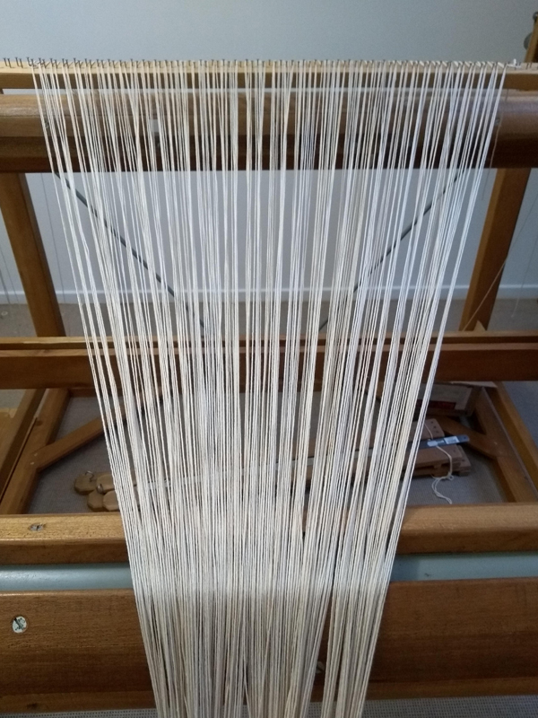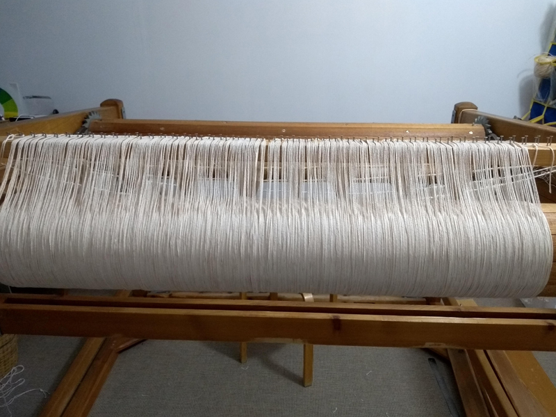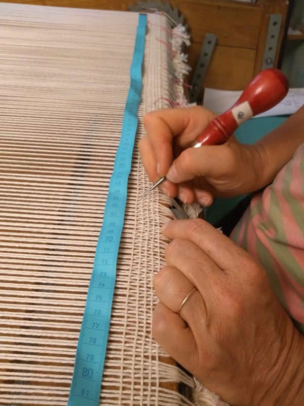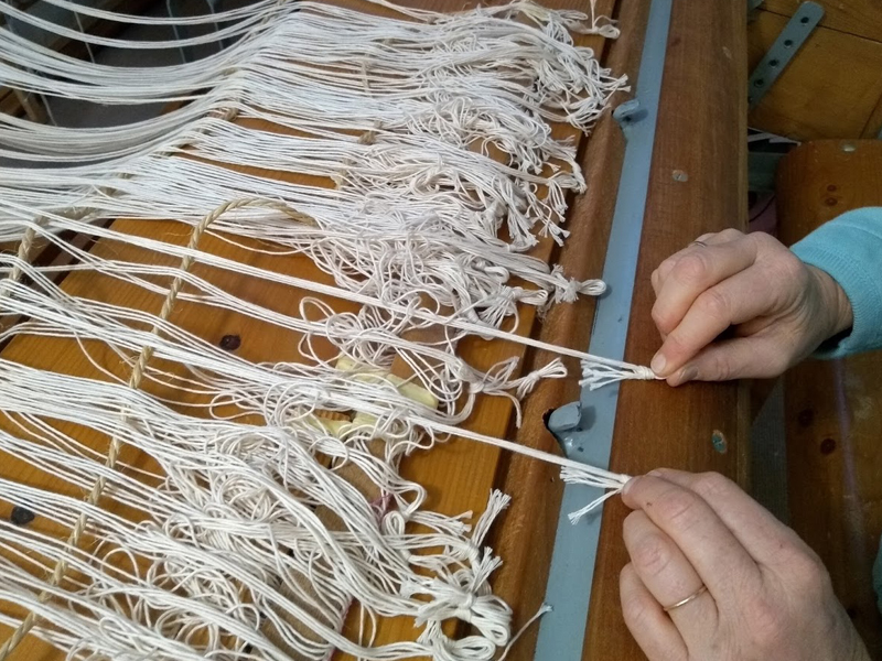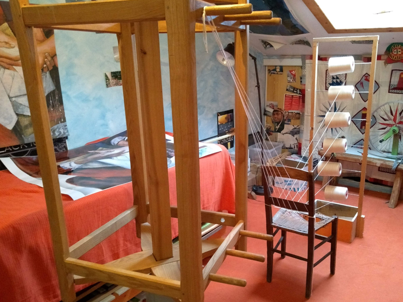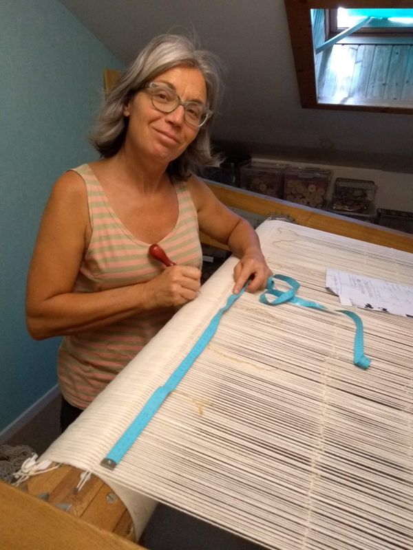 Je tisse sur une chaîne de coton, ourdie, montée et égalisée patiemment sur le métier.
